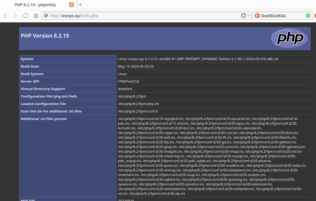 Vous devriez voir vos informations PHP sur Debian 12.