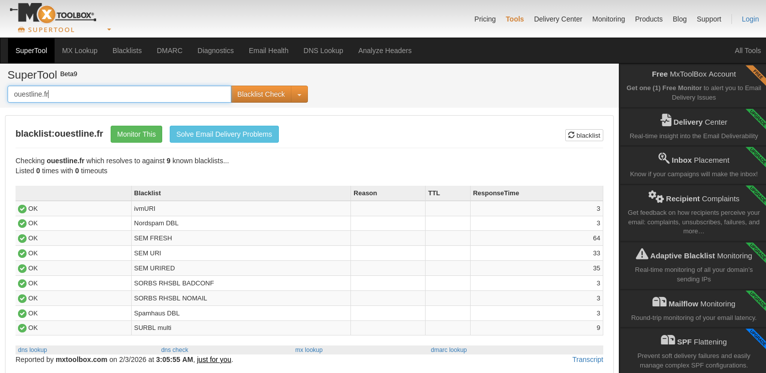 Vérifier si le domaine du serveur n’est pas blacklisté