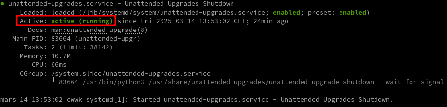 le service unattended-upgrades est activé pour installer automatiquement les mises à jour.
