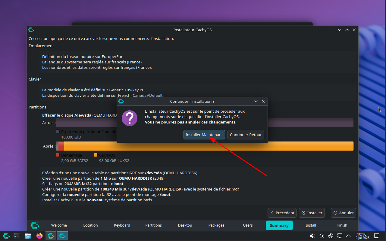 BTRFS est le système de fichiers par défaut et recommandé pour CachyOS. Choisissez-le si vous n’êtes pas sûr.