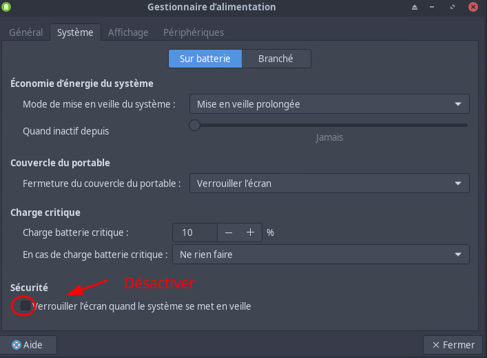 Menu –> Paramètres –> Economiseur d’écran –> Onglet “Verrouiller l’écran” , désactiver