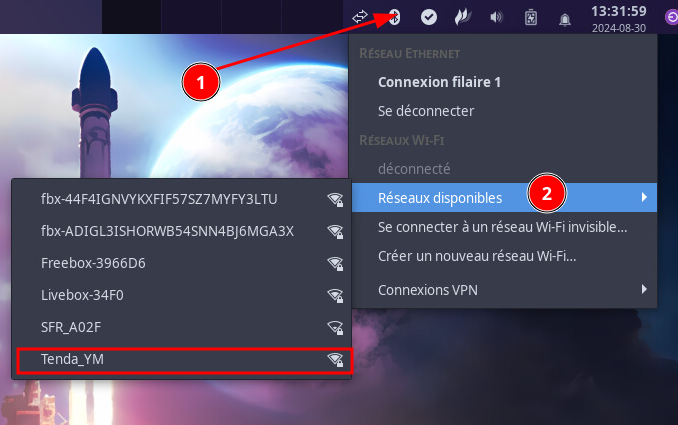 Insérer la clé USB EndeavourOS, basculer en FR et lancer l’installation