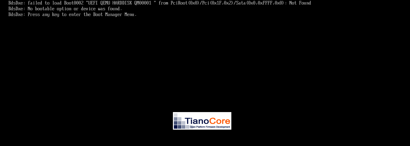 L’amorçage échoue et invite à presser une touche pour afficher le menu de Boot UEFI