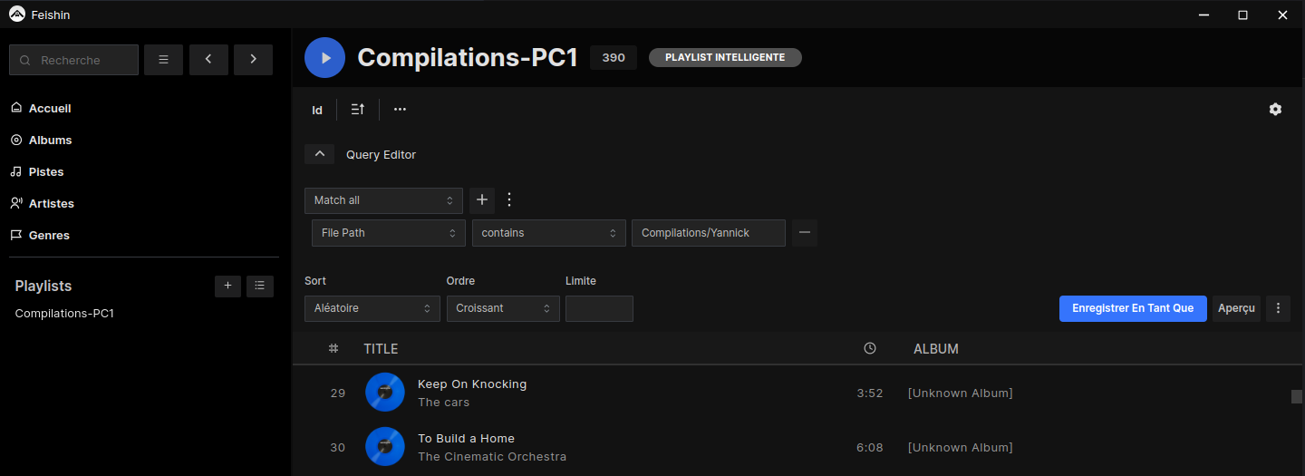 Une façon graphique de créer des playlists avec Feishin, un client de bureau/web pour Navidrome, qui prend en charge la création de listes de lecture intelligentes