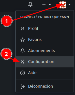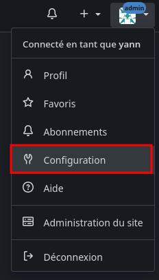 - Accédez aux paramètres du profil Gitea de l’utilisateur dans le coin supérieur droit de l’écran: