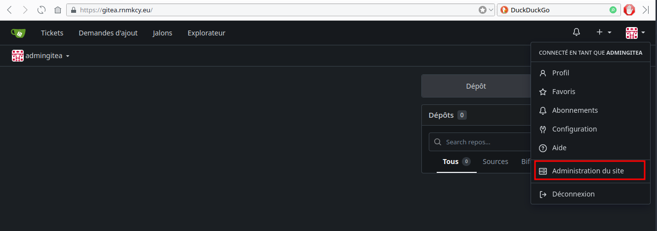 Se onnecter sur gitea https://gitea.rnmkcy.eu dans le panneau de configuration