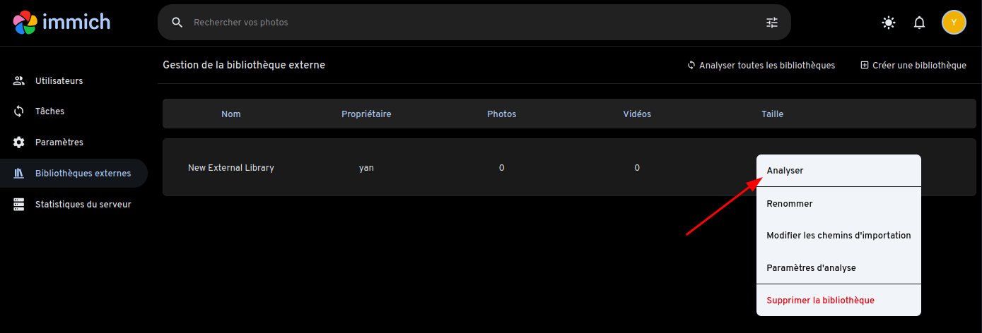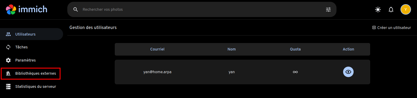 Liste des utilisateurs: immich-admin list-users