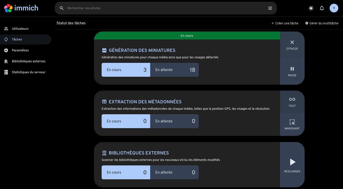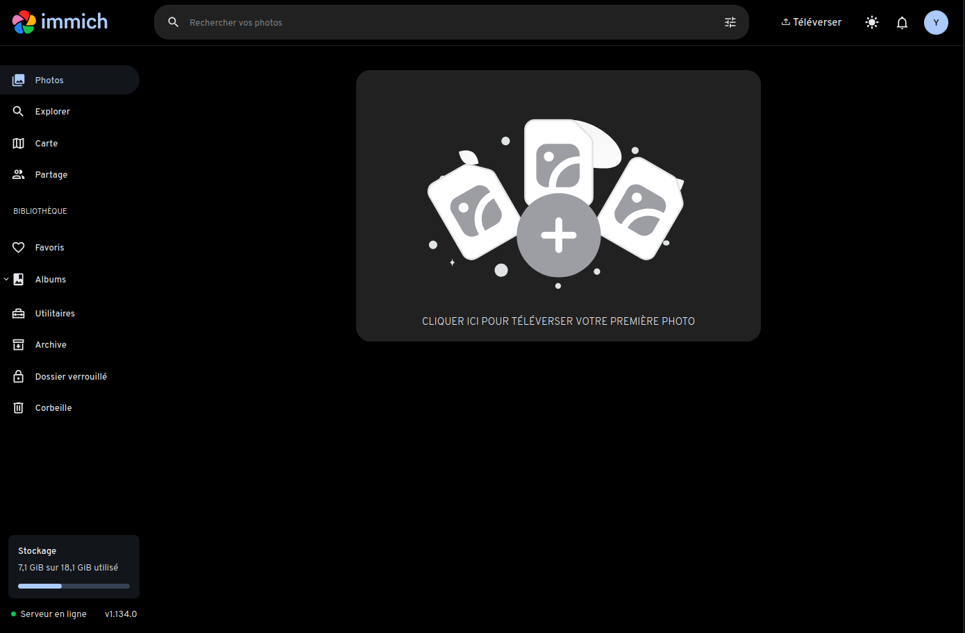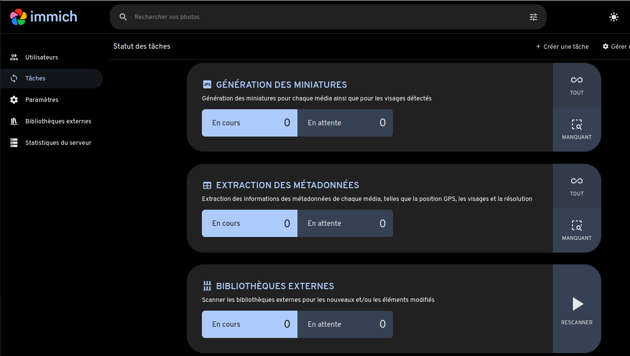 immich - Gestionnaire web photos et vidéos installé sur une machine virtuelle Alpine Linux