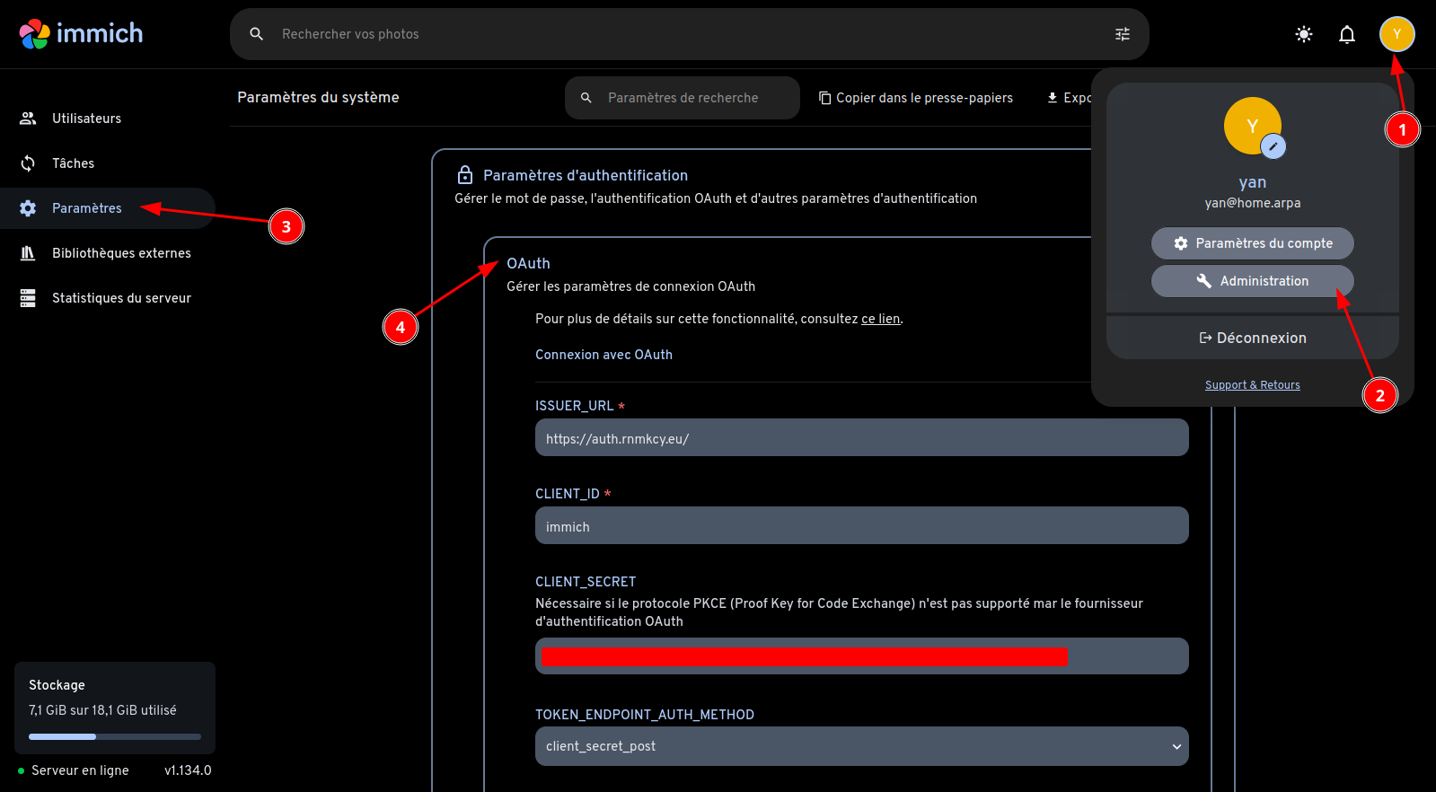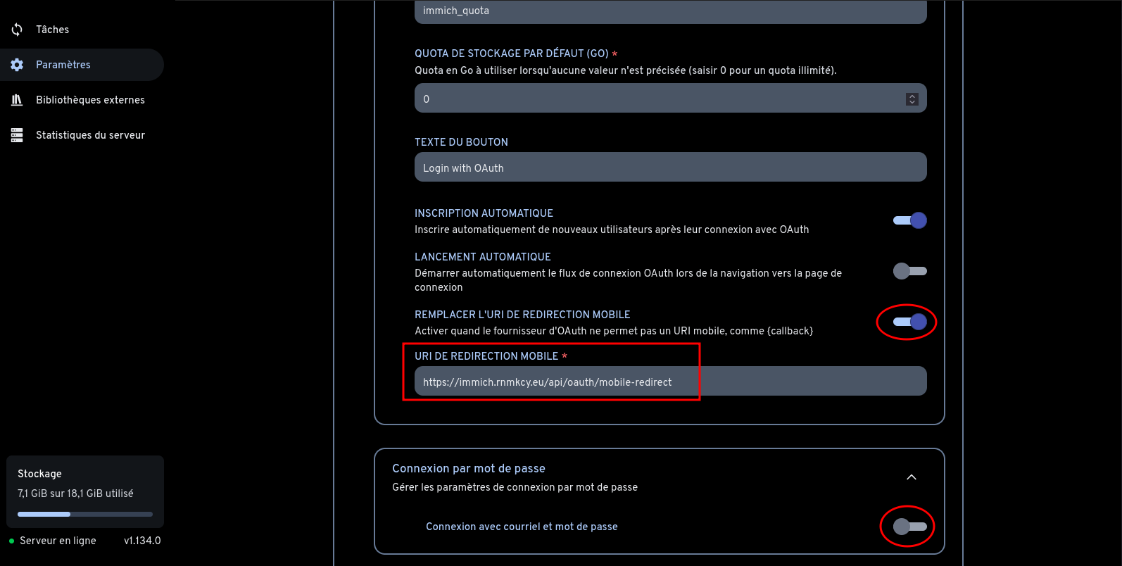Désactiver oauth: immich-admin disable-oauth-login