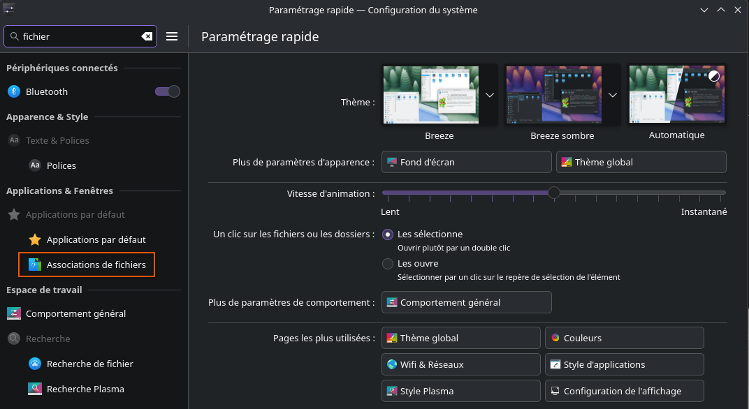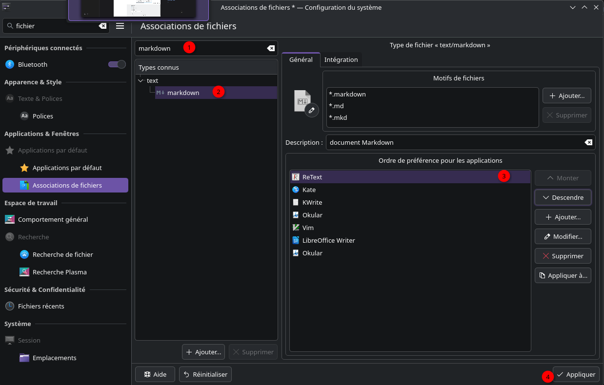 KDE Plasma devrait immédiatement prendre en compte vos nouvelles associations d’applications par défaut.