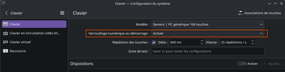 - Repérez l’option “Verrouillage numérique au démarrage”