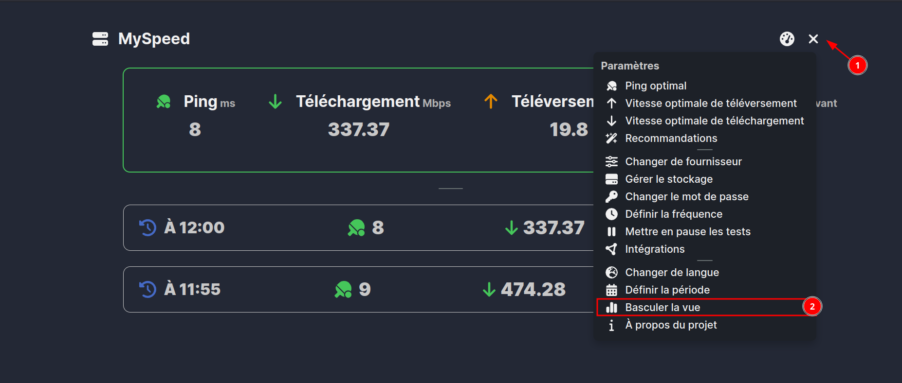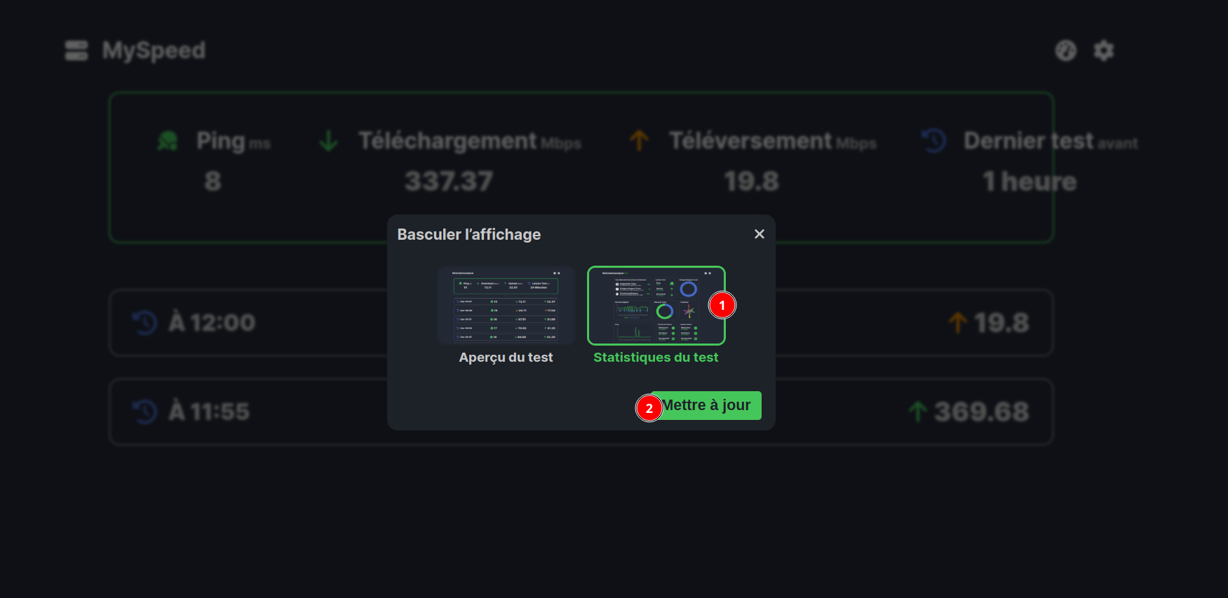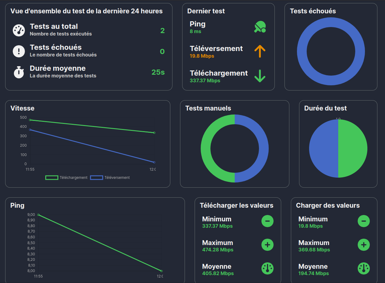 - 📊 MySpeed génère des statistiques claires sur la vitesse, le ping, et plus encore.
