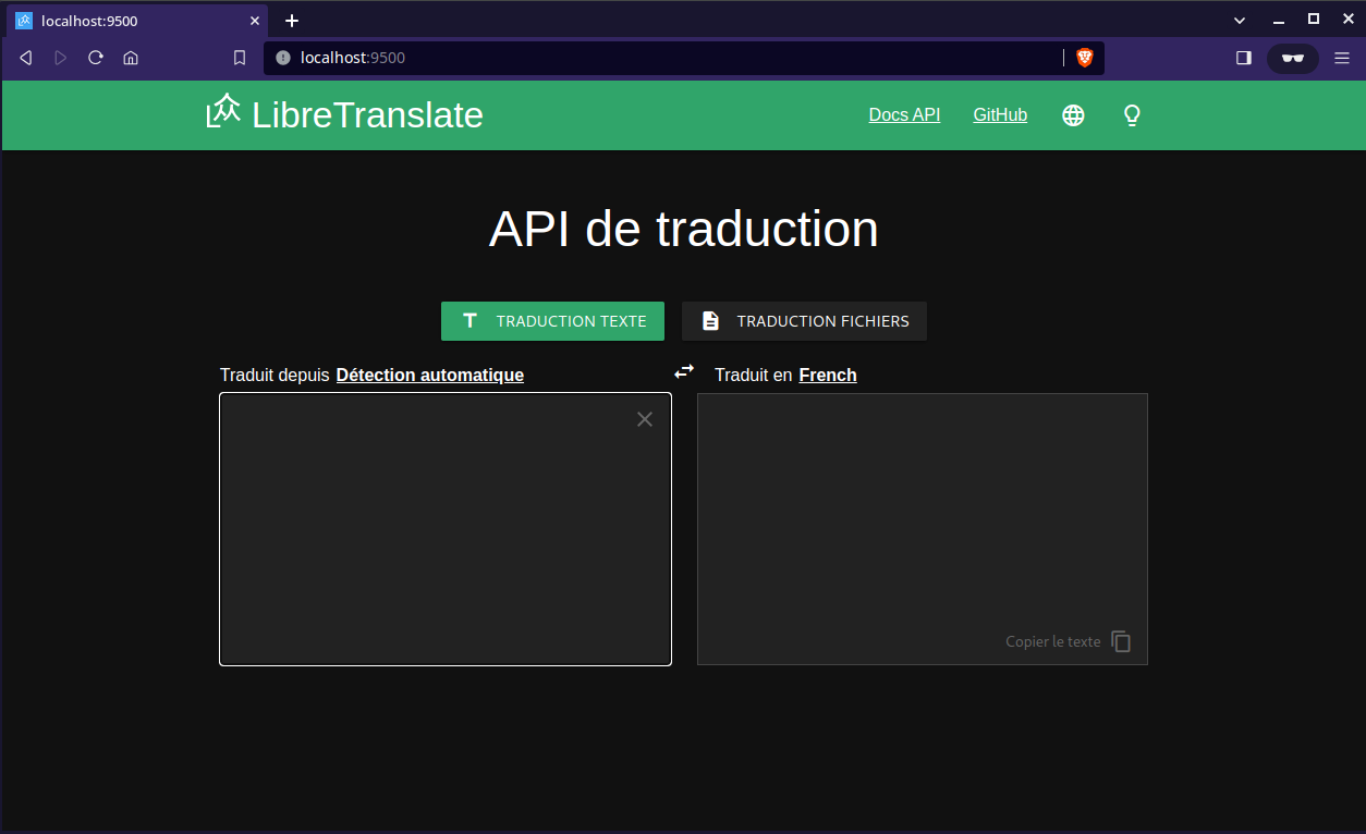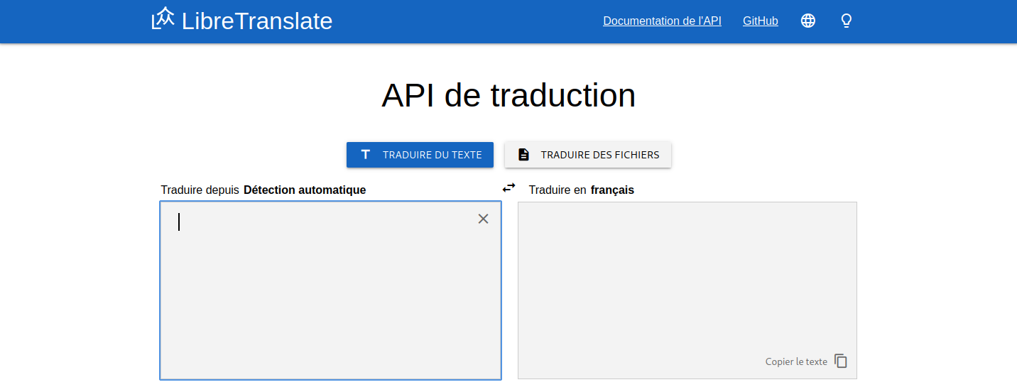 LibreTranslate fournit une API de traduction open source. Auto-hébergeable, fonctionne offline, facile à mettre en place. LibreTranslate est écrit en python et utilise la librairie de traduction argos.