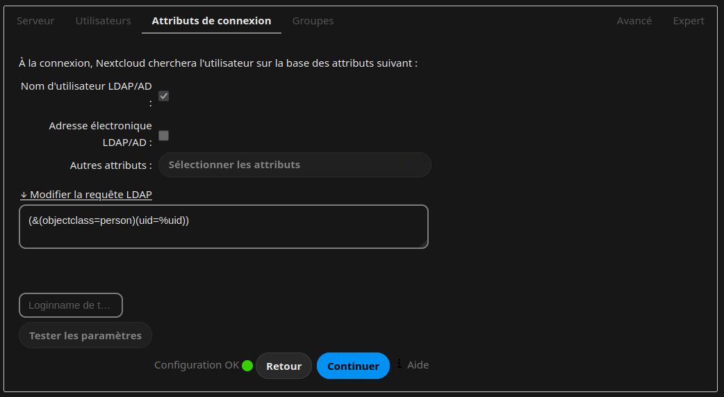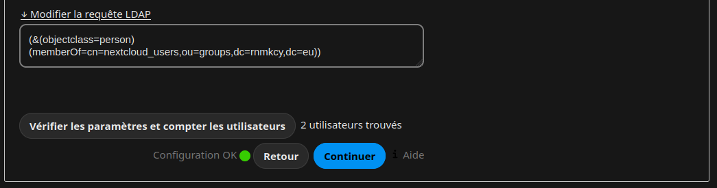 vérification pour les utilisateurs, via LDAP.