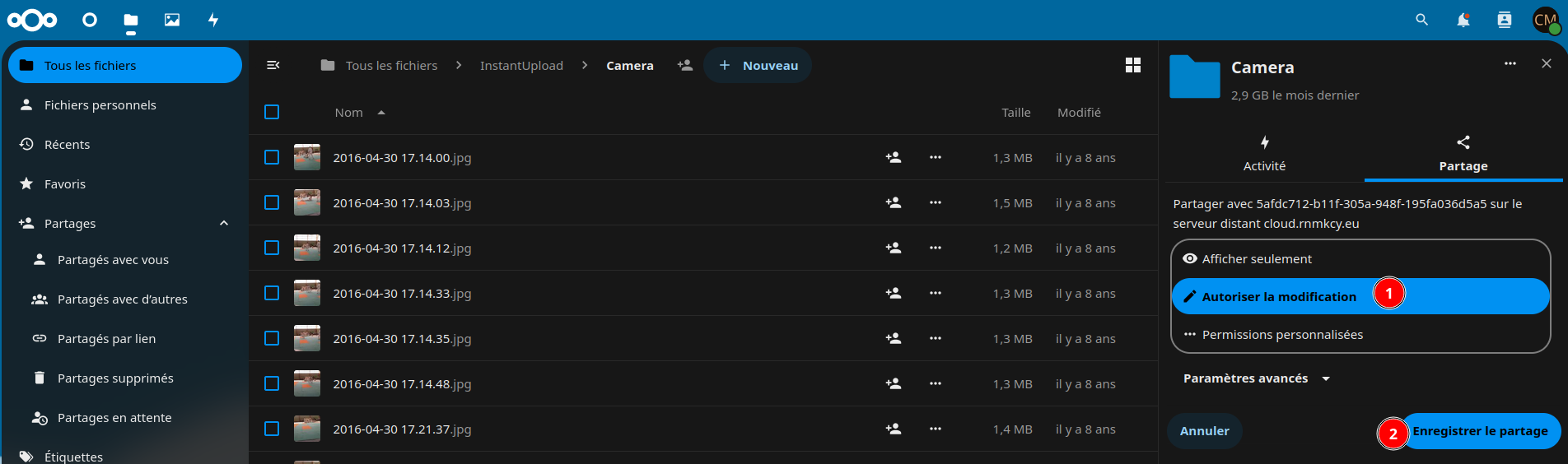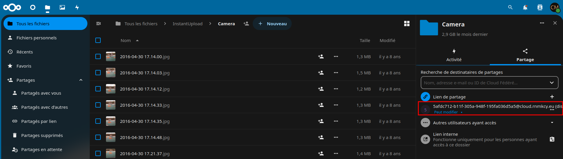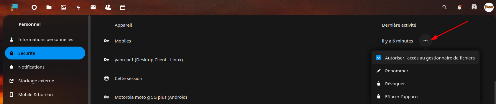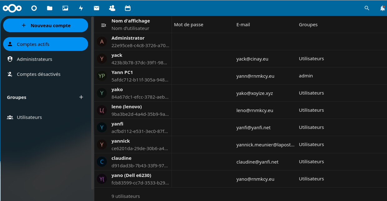 # si propriétaire nextcloud