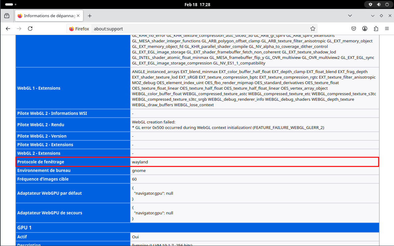 Ouvrez Firefox et allez à about:support pour vérifier la valeur par rapport au “Protocole de fenêtrage”.