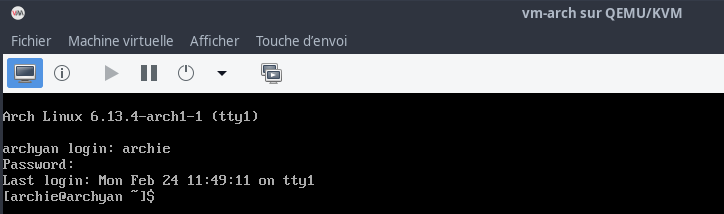 PC1 KVM (vm-arch) Archlinux chiffrée LVM/LUKS (XFCE/KDE/GNOME)