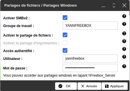 Configurer le partage sur Freebox OS
