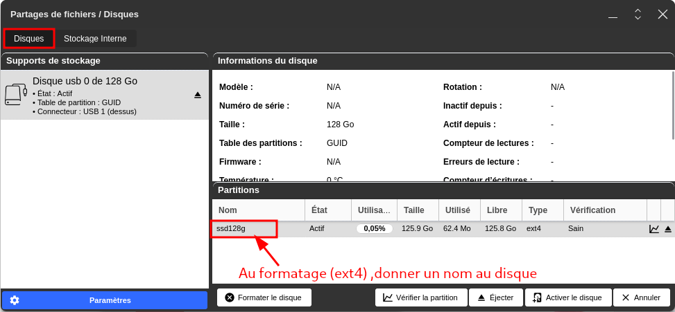 Montage linux du disque USB Freebox