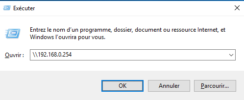 Vous pouvez tester l’accès en effectuant la suite de touches Windows + R puis le chemin d’accès de la Freebox \192.168.0.254