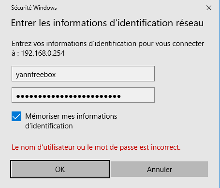 Un nom d’utilisateur et mot de passe est demandé, celui que vous avez défini dans Freebox OS: