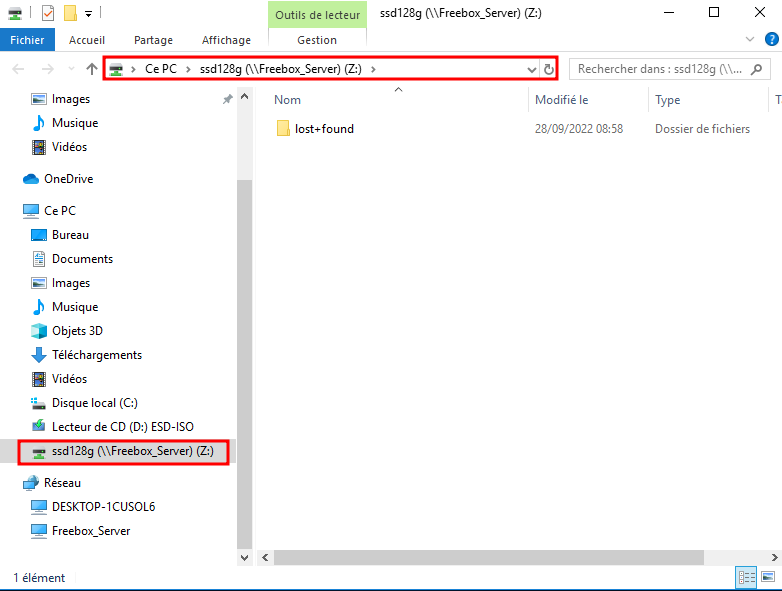 le disque de la Freebox apparaît sur l’explorateur de fichiers: