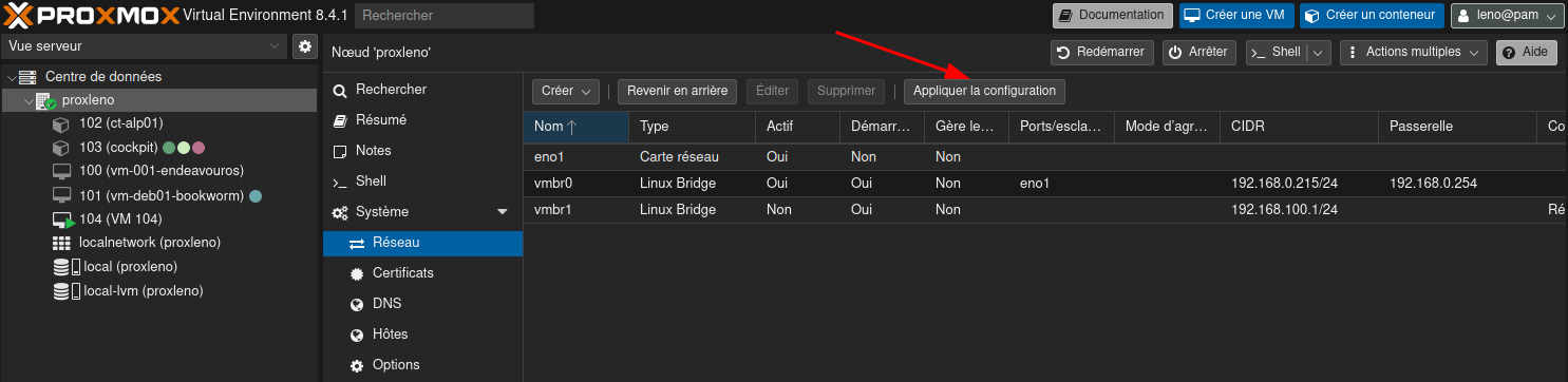 Une fois les modifications effectuées, redémarrez le serveur Proxmox pour appliquer la nouvelle configuration