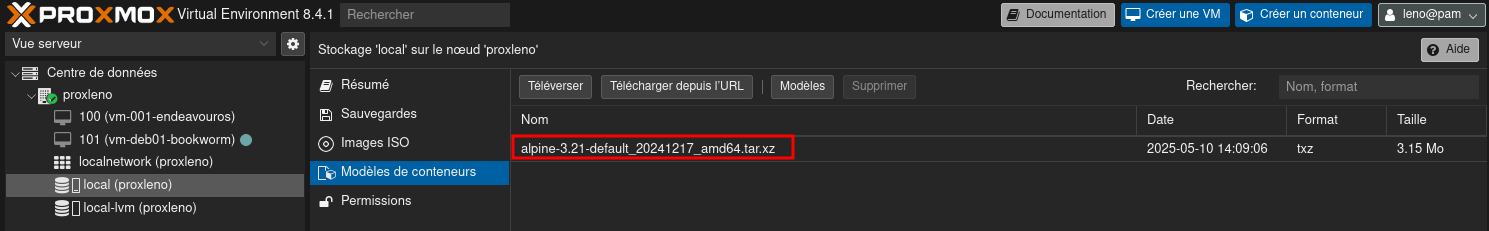 La liste des modèles disponibles est mise à jour quotidiennement par l’intermédiaire de pve-daily-update.