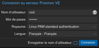 Pour accéder à l’interface, connectez-vous en tant que root et fournissez le mot de passe que vous définissez lors de l’installation de Proxmox.