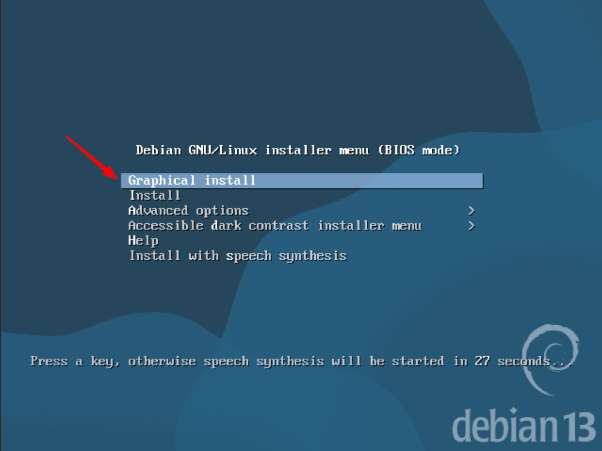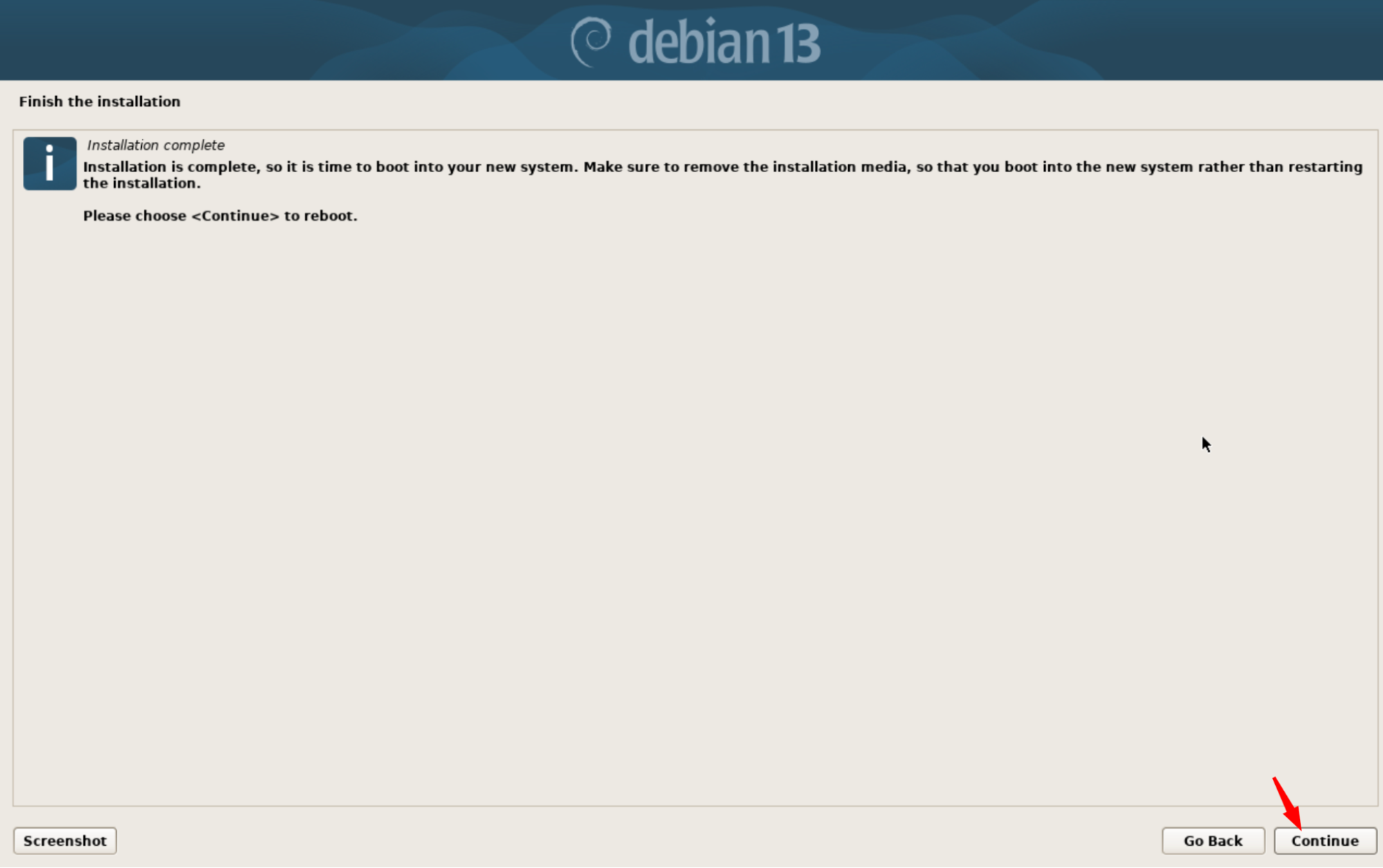 Félicitations ! Debian 13 est maintenant installé avec succès.