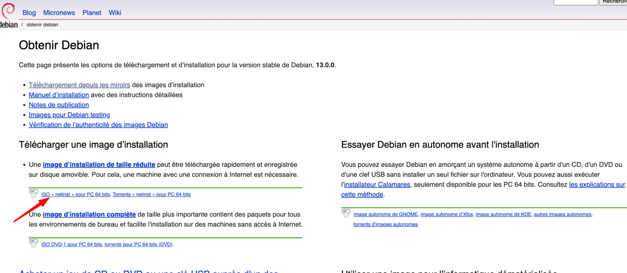 Téléchargement de l’image ISO de Debian 13
