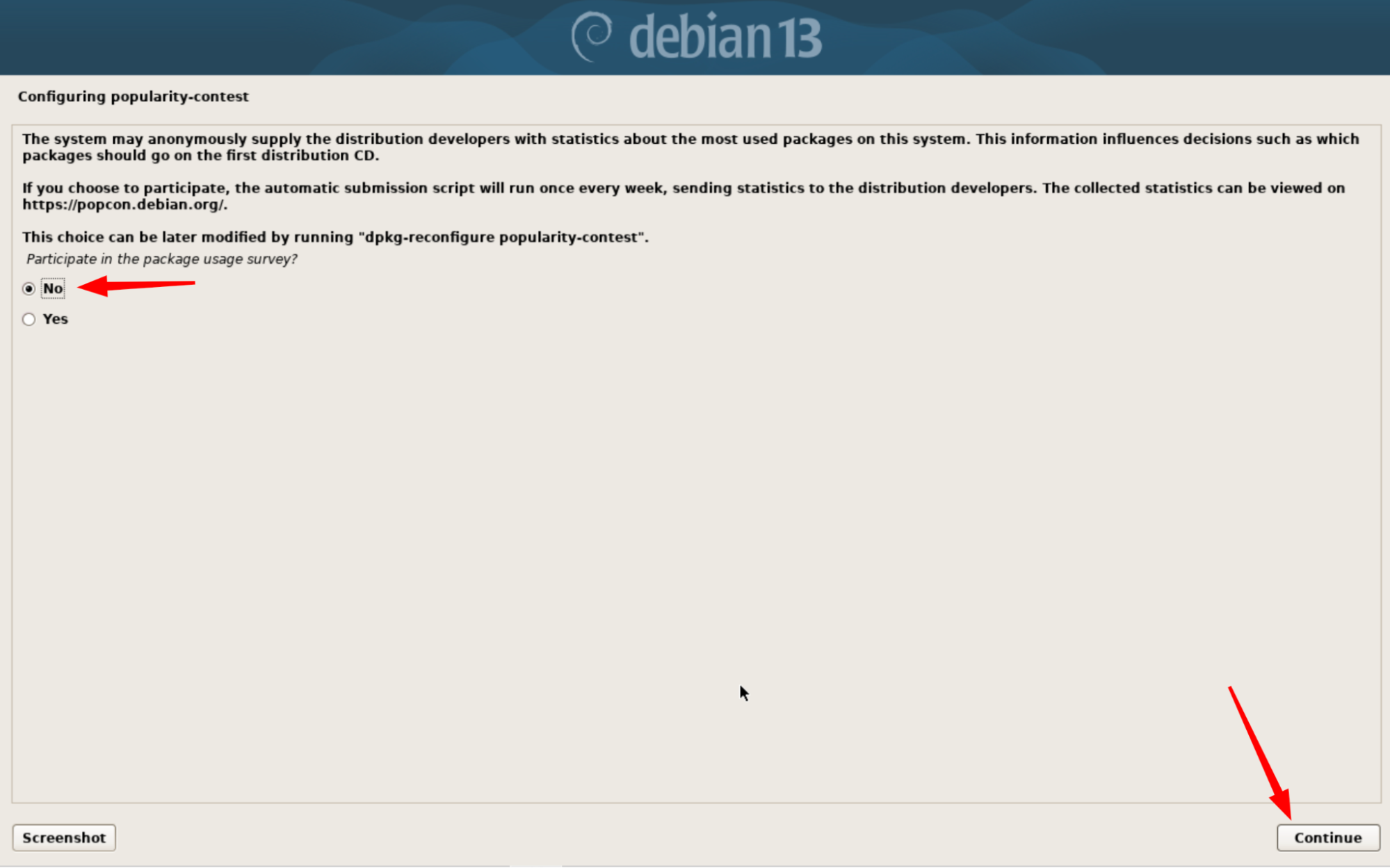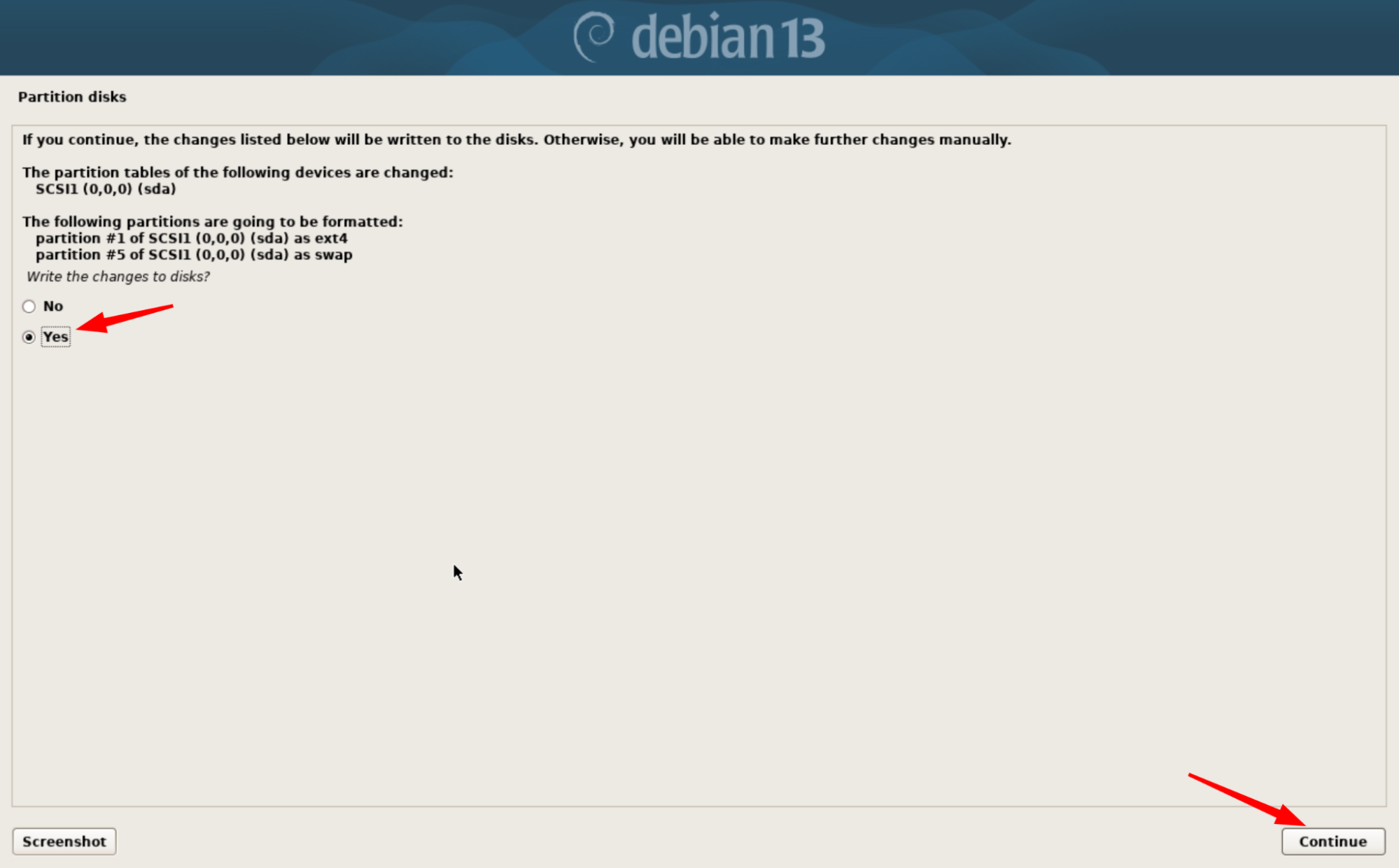 Yes, puis validez avec Continue.