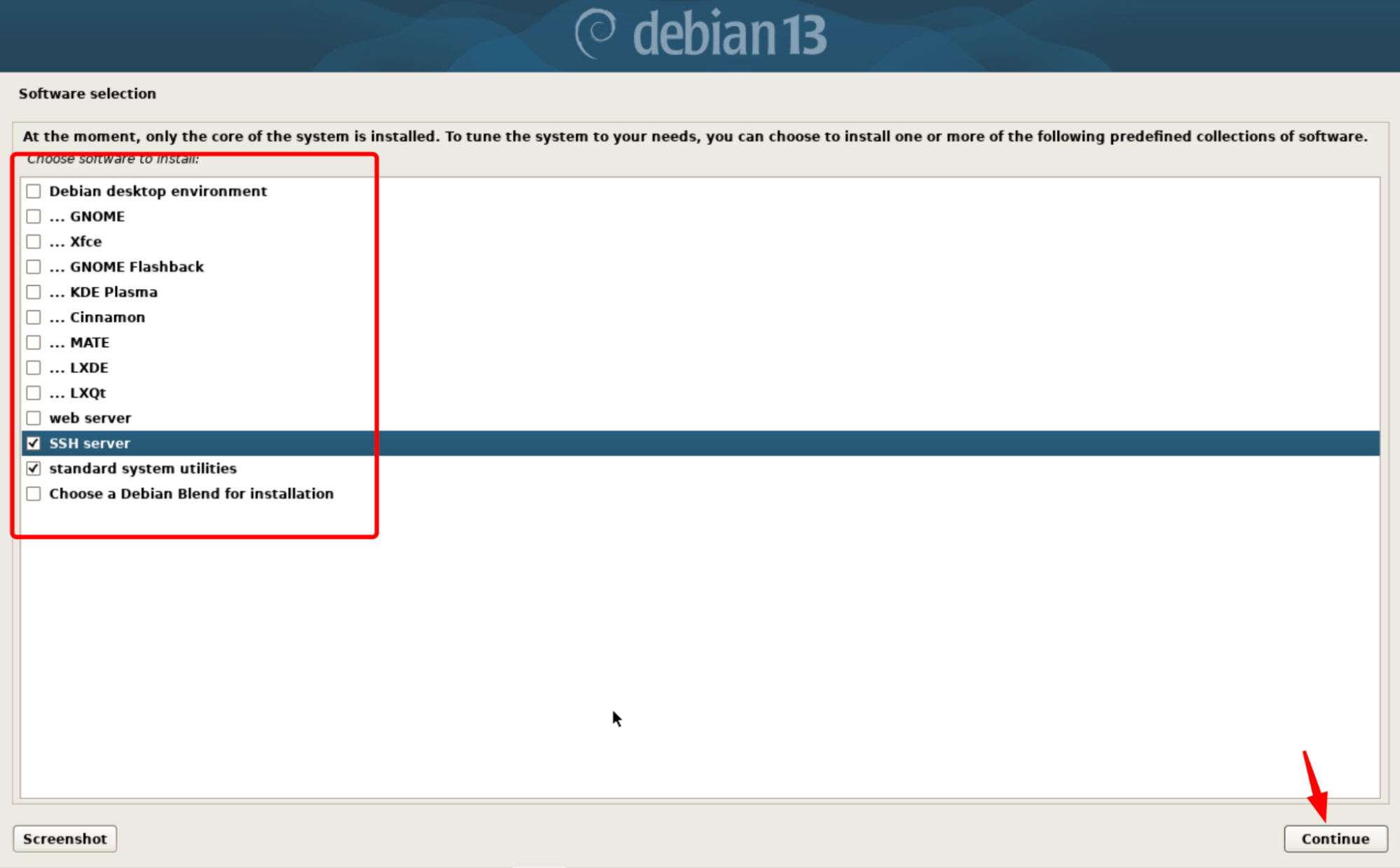 Cliquez sur Continue pour poursuivre.