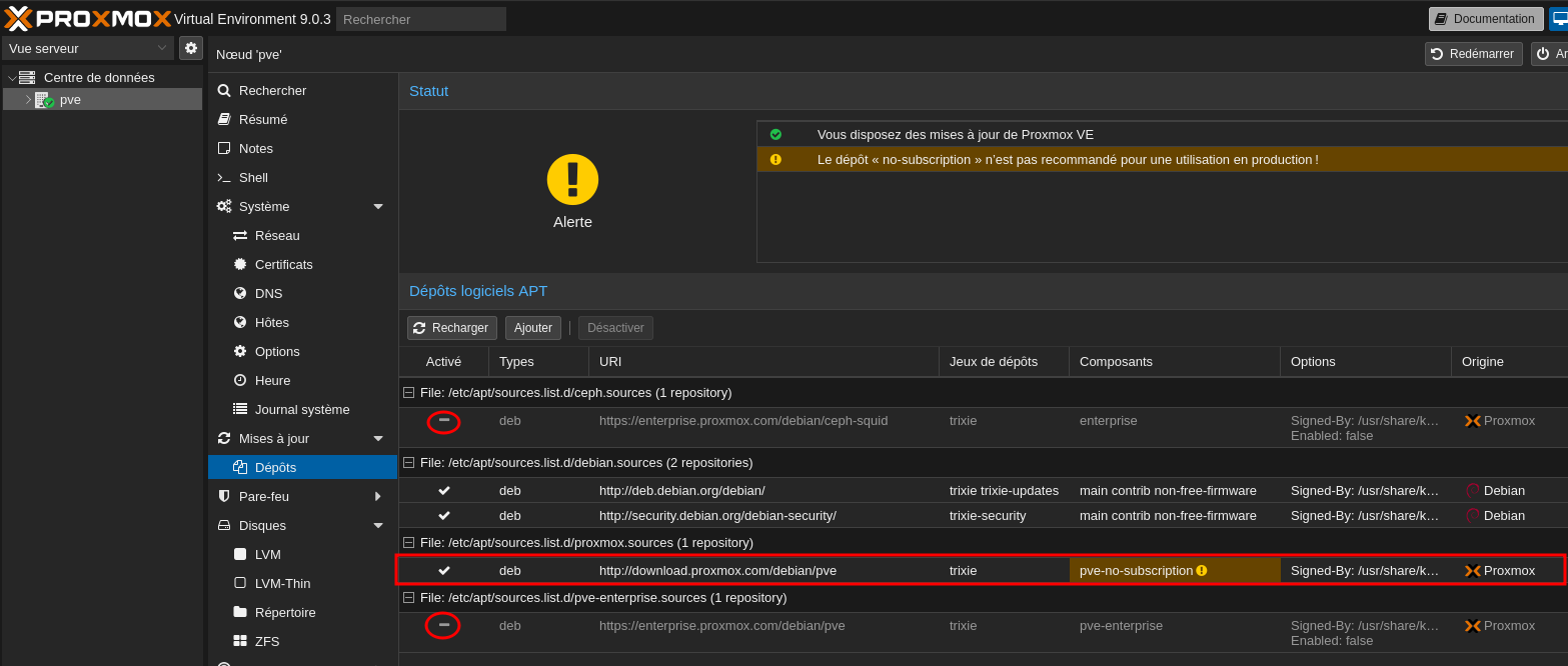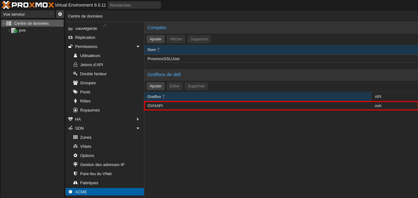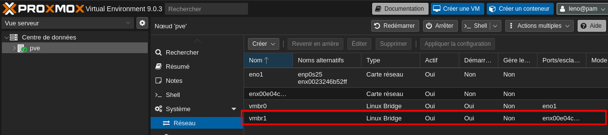 On se connecte sur le serveur proxmox debian 13