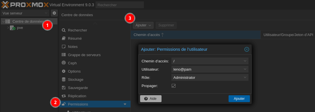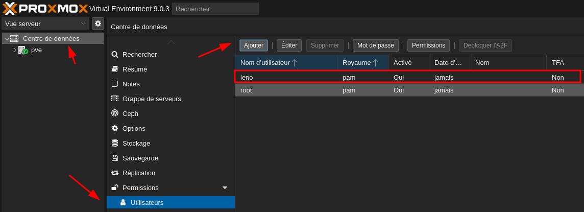 Pour créer un nouvel utilisateur dans Proxmox, procédez comme suit: