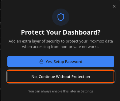 Pas de mot de passe, proxmox n’est pas exposé sur internet