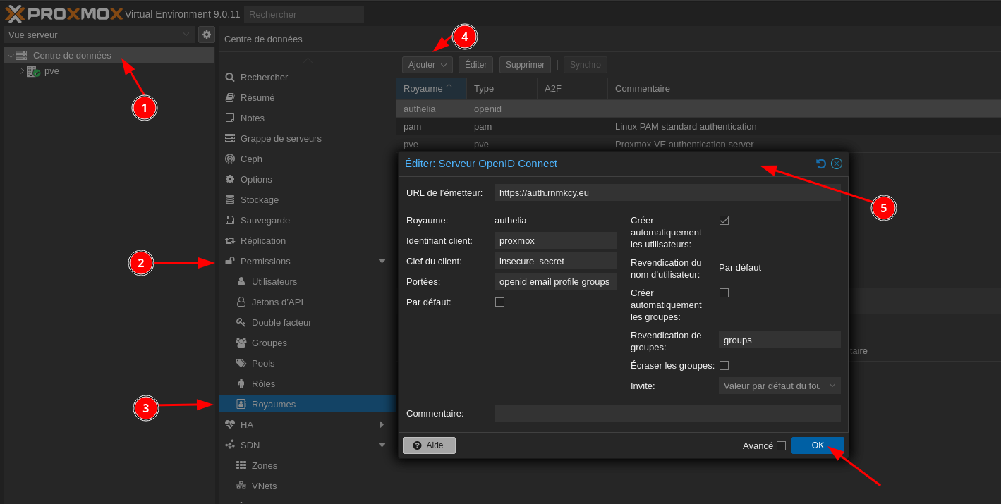 Configurer Proxmox Virtual Environment pour utiliser Authelia en tant que fournisseur OpenID Connect