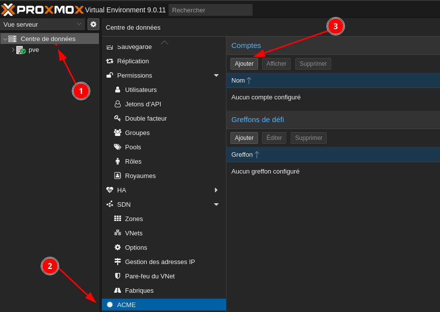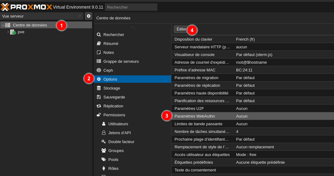 - Connectez-vous à l’interface Web Proxmox.