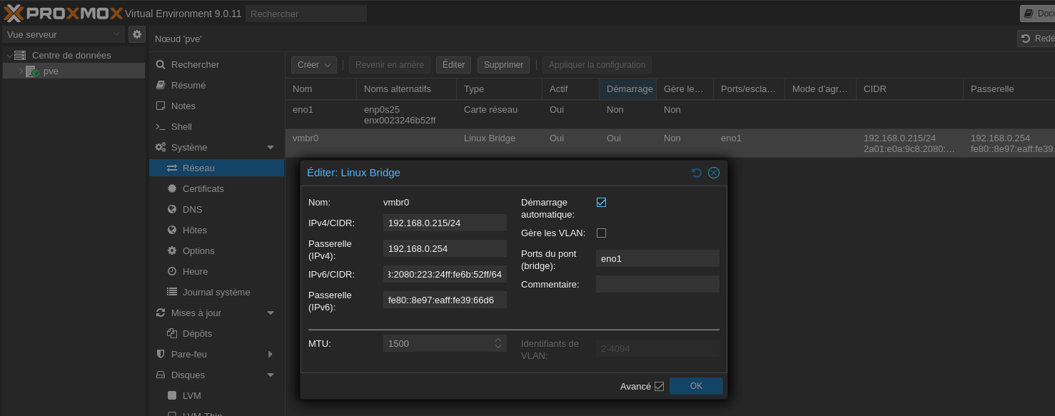 Accès lien https://192.168.0.215:8006