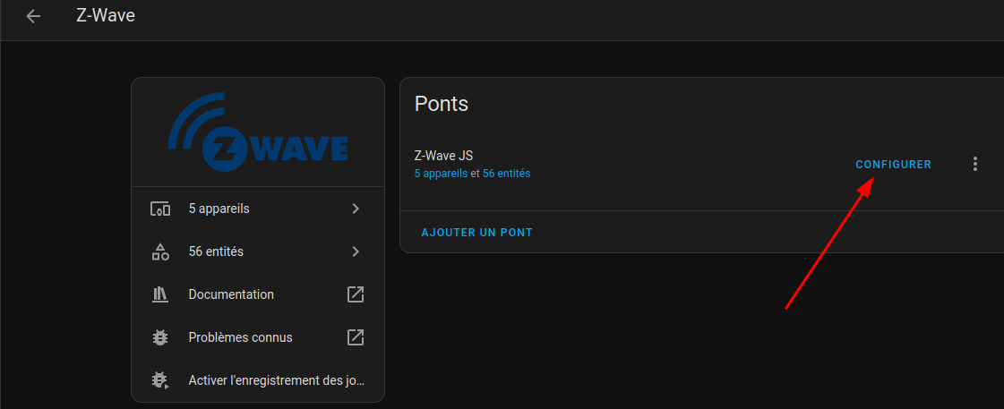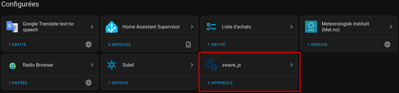 Après installation, zwave est configuré