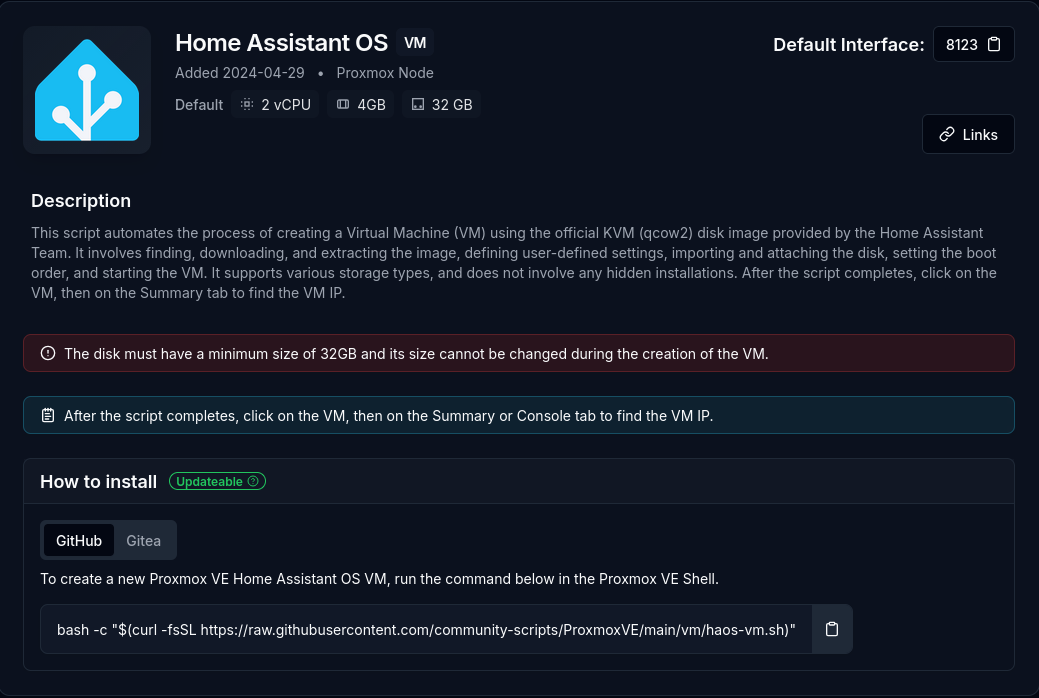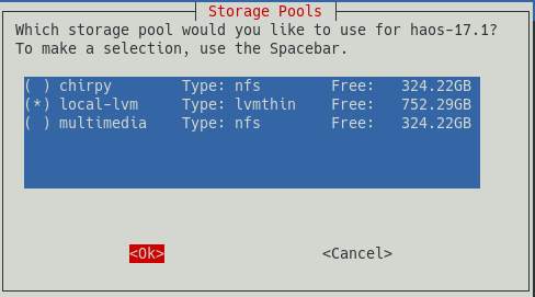 bash -c "$(curl -fsSL https://raw.githubusercontent.com/community-scripts/ProxmoxVE/main/vm/haos-vm.sh)"