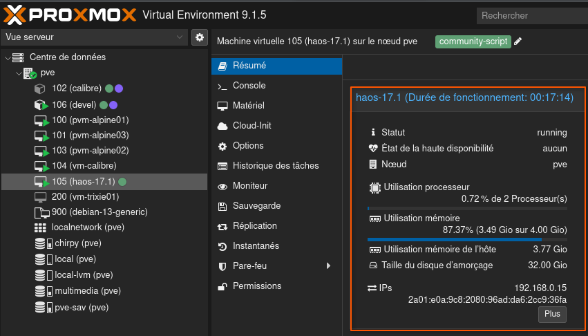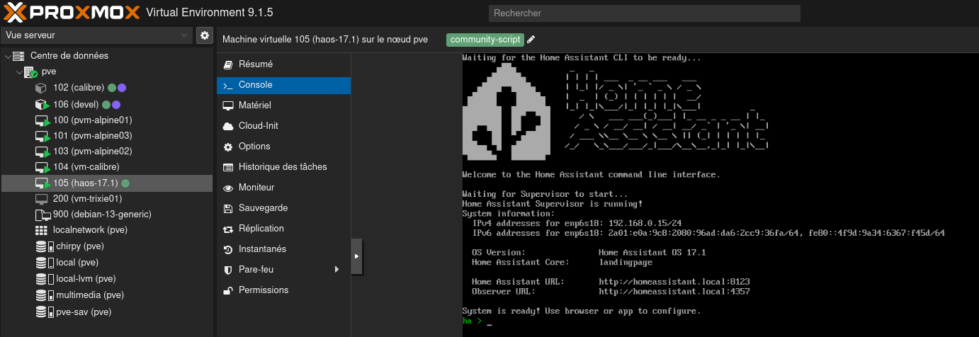Proxmox: HA OS Script terminé