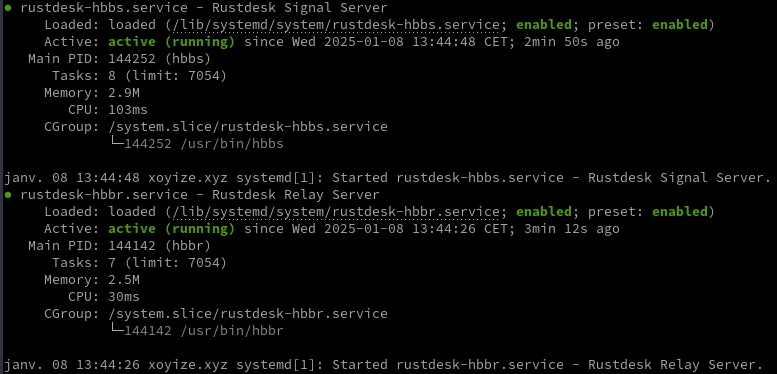 systemctl status rustdesk-hbbs && systemctl status rustdesk-hbbr