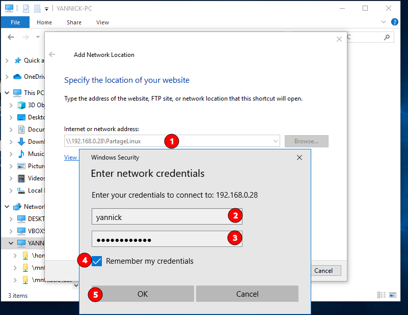 Accès partage hôte depuis windows