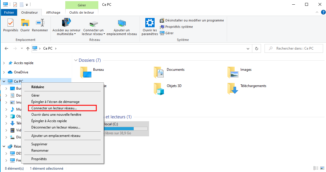 on choisit « Connecter un lecteur réseau »