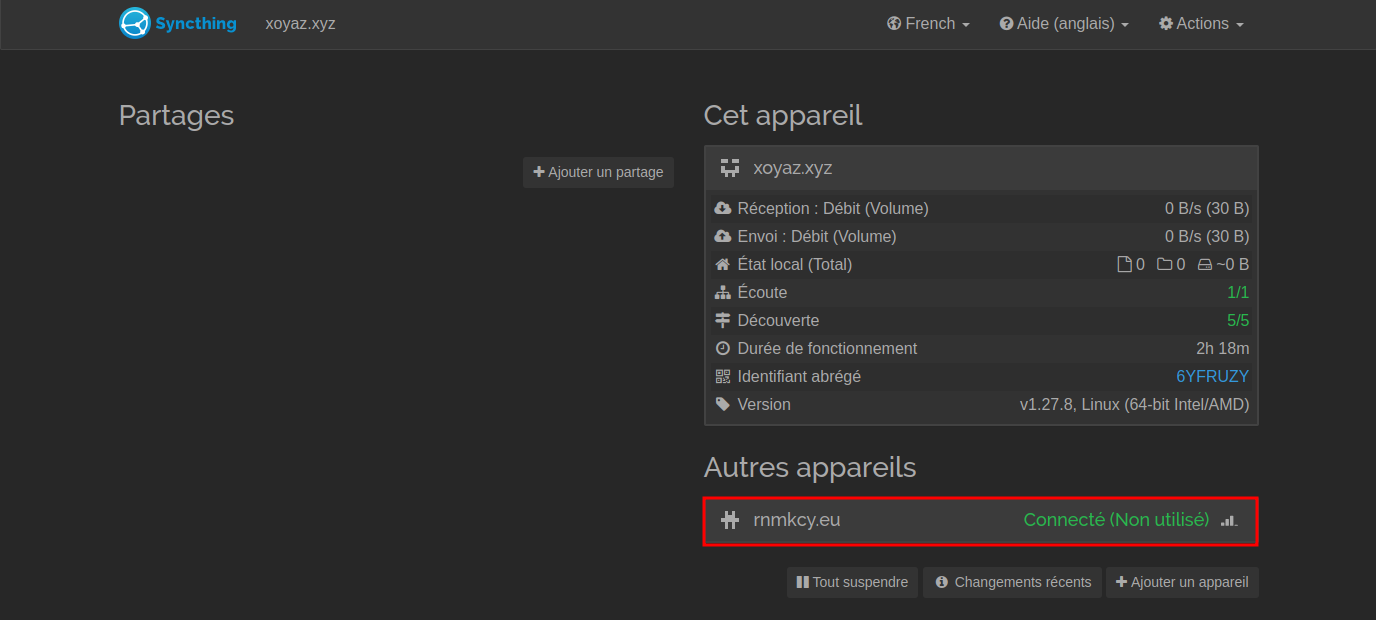 Dans l’onglet Partage, sélectionnez votre autre périphérique Syncthing.