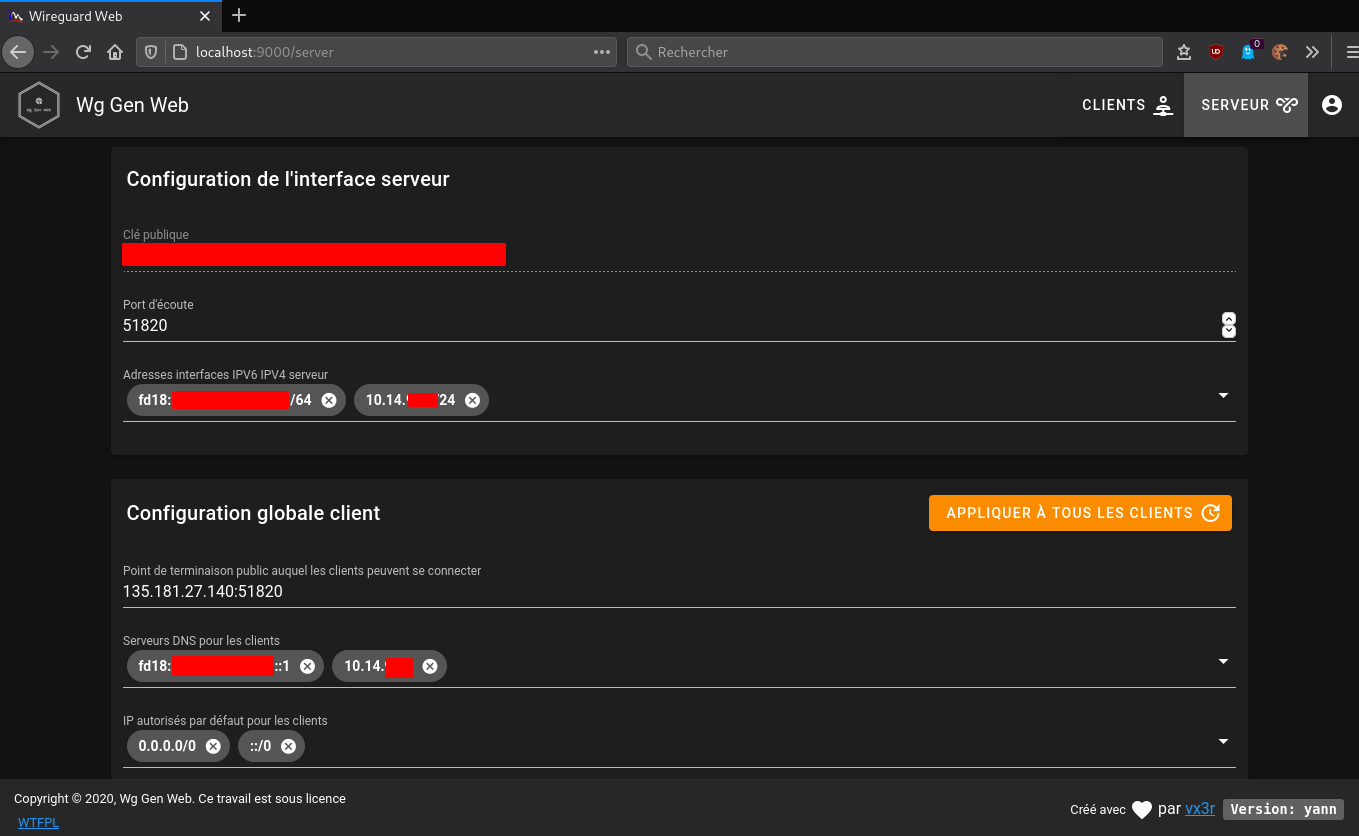 Ouvrir un navigateur sur le client et saisir localhost:9500 pour afficher le gestionnaire web de wireguard