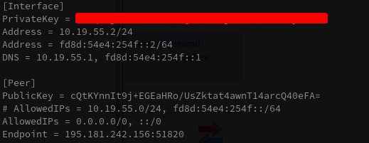 Si vos fichiers PEER sont le serveur, il convient de les dupliquer sur le client dans un fichier /etc/wireguard/wg0.conf