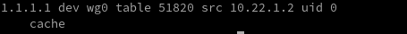 Vérifiez que votre client peer utilise le VPN en utilisant les commandes ip route et ip -6 route. Si vous utilisez le VPN comme passerelle pour tout votre trafic Internet, vérifiez quelle interface sera utilisée pour le trafic destiné aux résolveurs DNS 1.1.1.1 et 2606:4700:4700::1111 de CloudFlare.