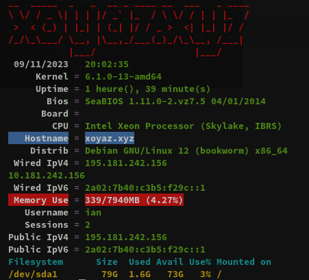 Linux xoyaz.xyz 6.1.0-13-amd64 #1 SMP PREEMPT_DYNAMIC Debian 6.1.55-1 (2023-09-29) x86_64 GNU/Linux